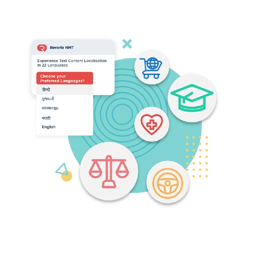 Reverie’s Translation API caters to 10+ industries, benefiting enterprises, small businesses, and government agencies by breaking language barriers, fostering collaboration, and expanding their reach nationwide.